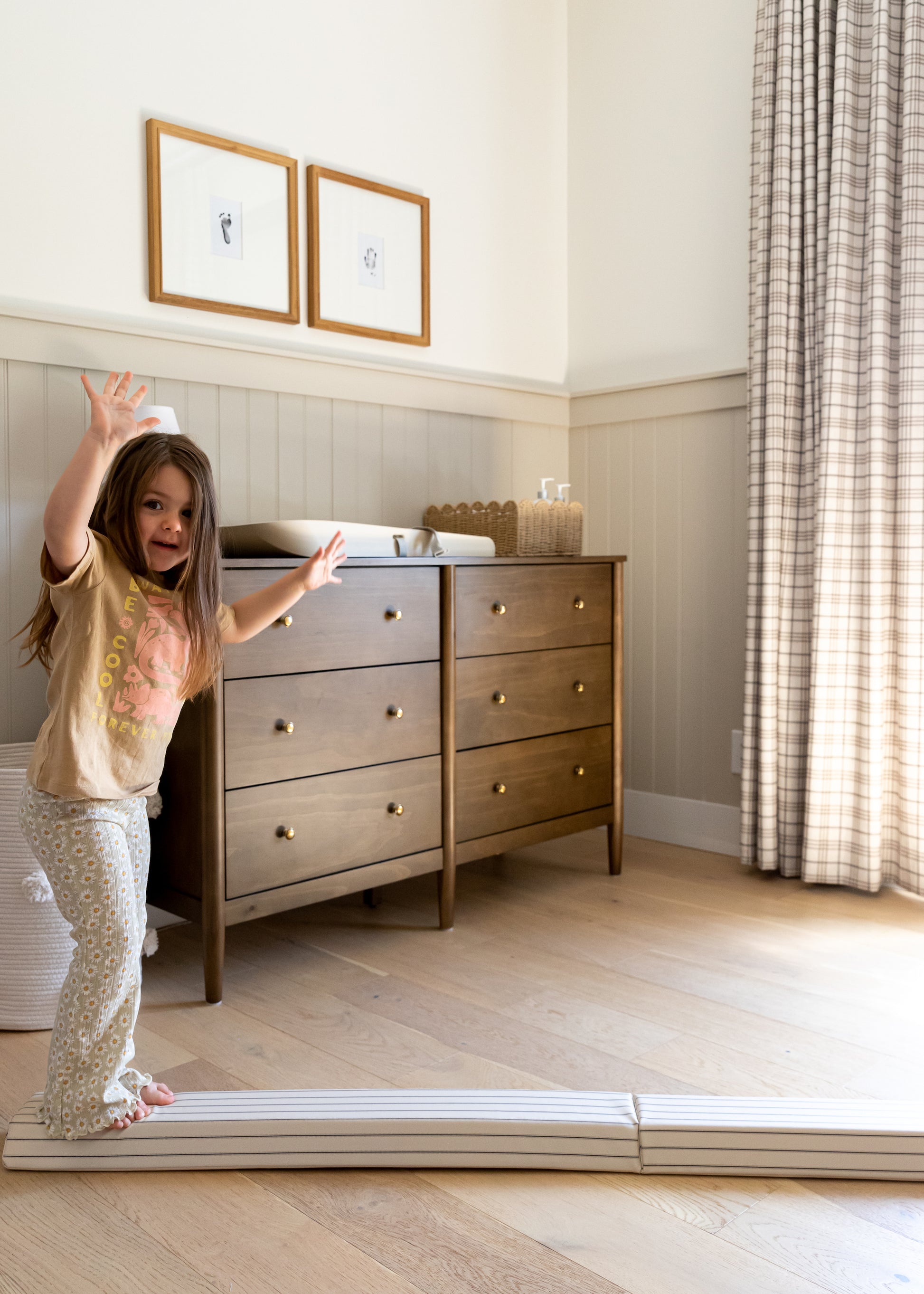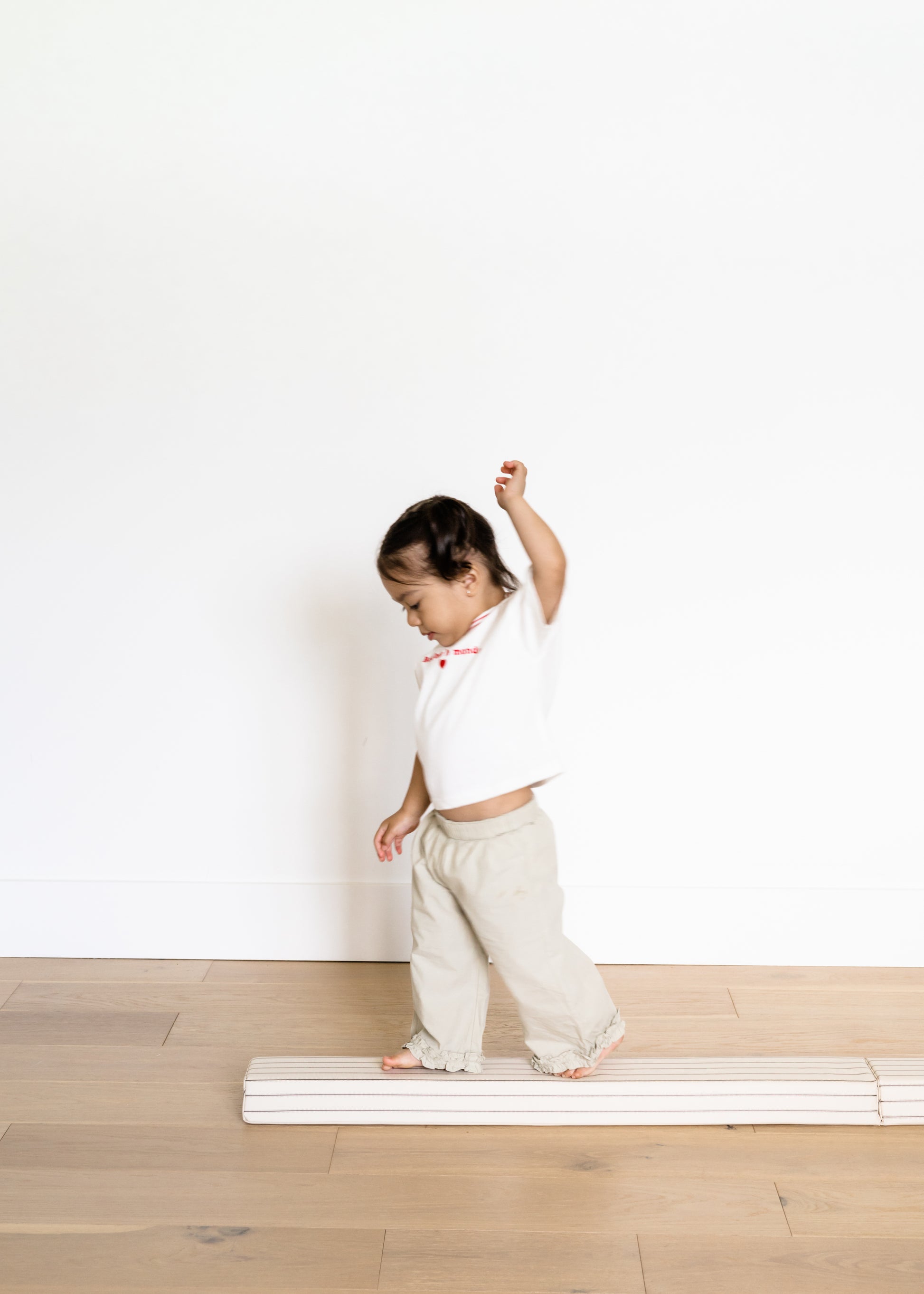 We purchased this to add to our stripe block set and our little loves in! We make fun obstacles courses across the beam, use it to run cars as it is leaned on the back of the couch, run underneath it, use it as a net for mini indoor hockey, it has so many uses. The foam is thick enough to hold your little and best of all, it compliments an aethestic playroom! We love our purchases from North and Nova and can't wait to add more pieces!
