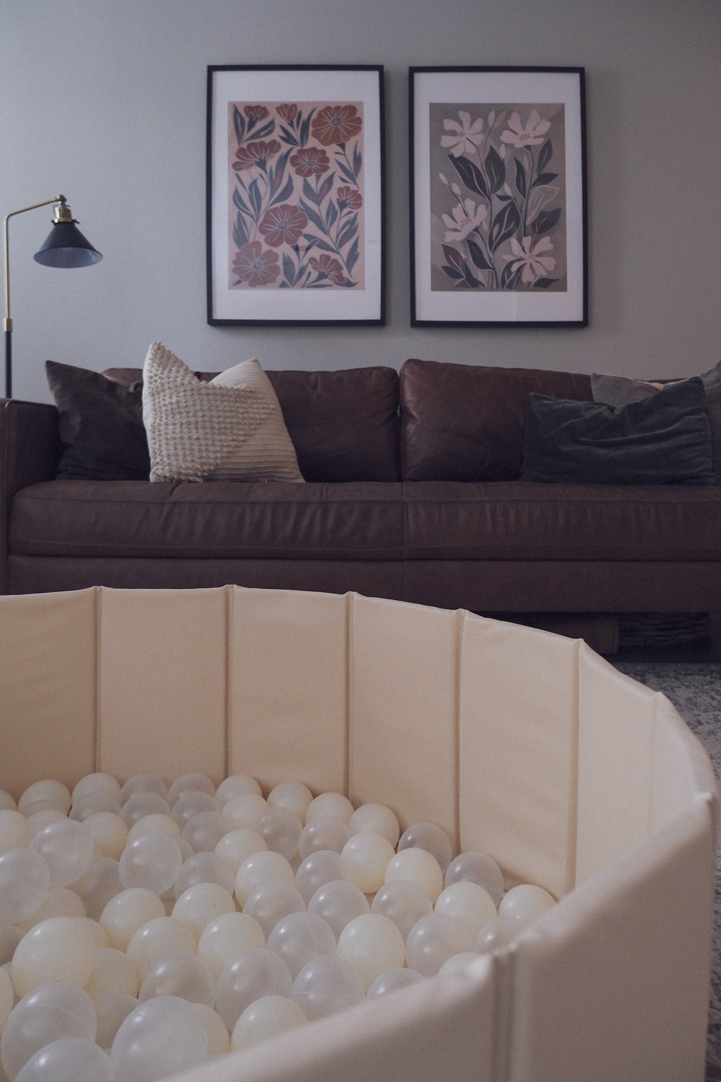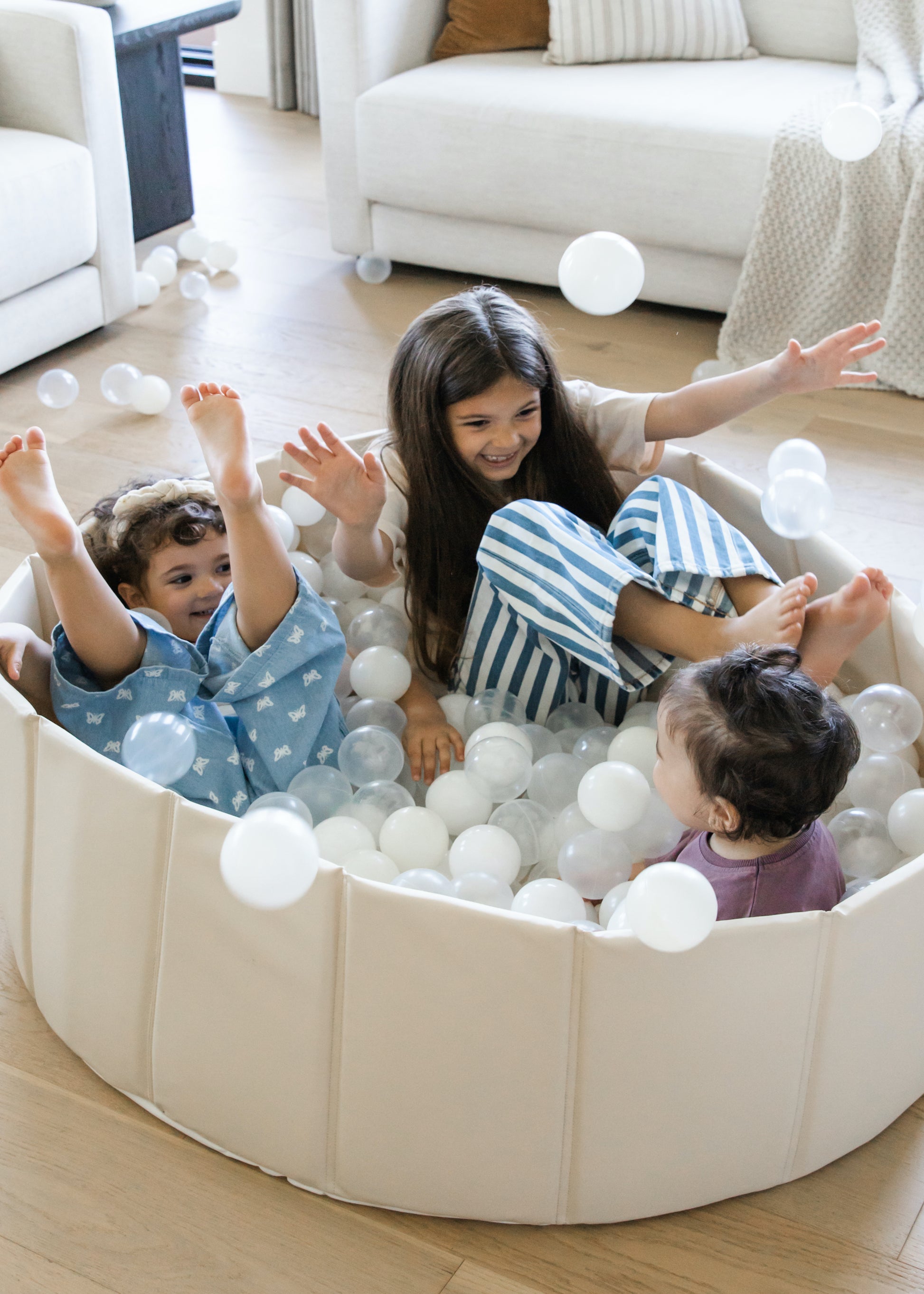 So much to love about this ball pit! The colour, the material and especially the size is perfect for my three kids. They all love to lounge in it ! It’s been a perfect addition in our living room!
